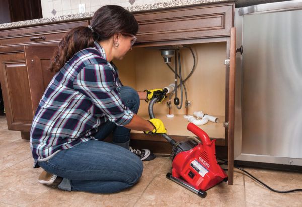 Voorbeelden van deze gootsteenmachines zijn de RIDGID PowerClear afvoerreiniger, de K-45 en K-40 rioolontstoppers.